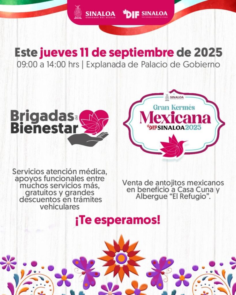 EL GOBIERNO DE SINALOA Y DIF ESTATAL TE INVITAN A LA GRAN KERMÉS MEXICANA 2025 Y A LAS BRIGADAS DEL BIENESTAR EN LA EXPLANADA DE PALACIO DE GOBIERNO