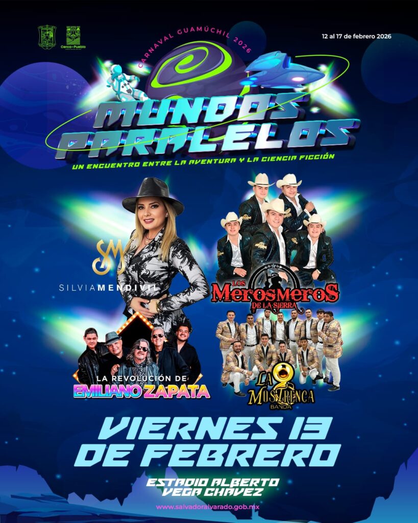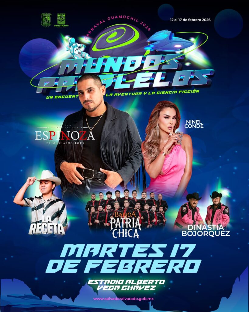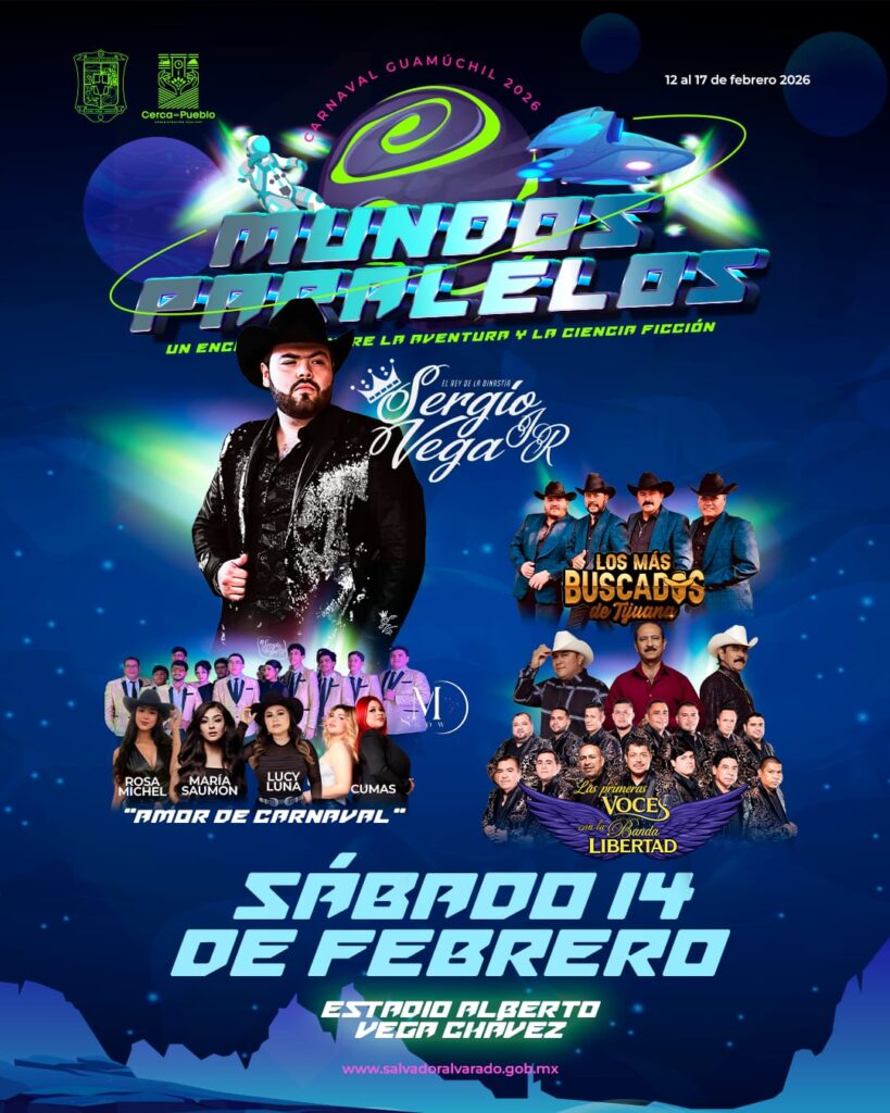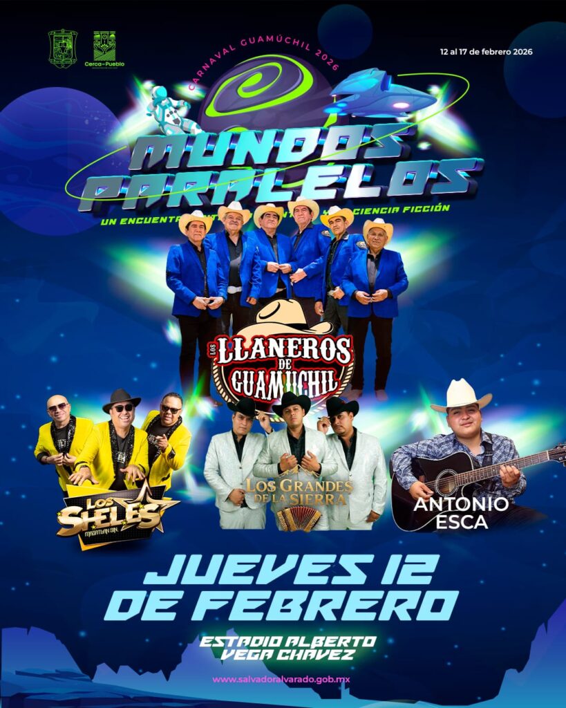 Guamuchil, Sinaloa; a 5 de febrero del 2026.- Mediante una rueda de prensa se dio a conocer el elenco artístico y la programación general del Carnaval Guamúchil 2026 “Mundos Paralelos” que se realizará del 12 a 17 de febrero, presentación encabezada por el presidente del Patronato del Carnaval, Romel Omar Báez Lugo, acompañado de la presidenta municipal Lupita López González, regidores, el presidente de la Comisión de Carnaval Mario Alejandro Ahumada Sánchez y la secretaria del patronato Varinia Takashima.
