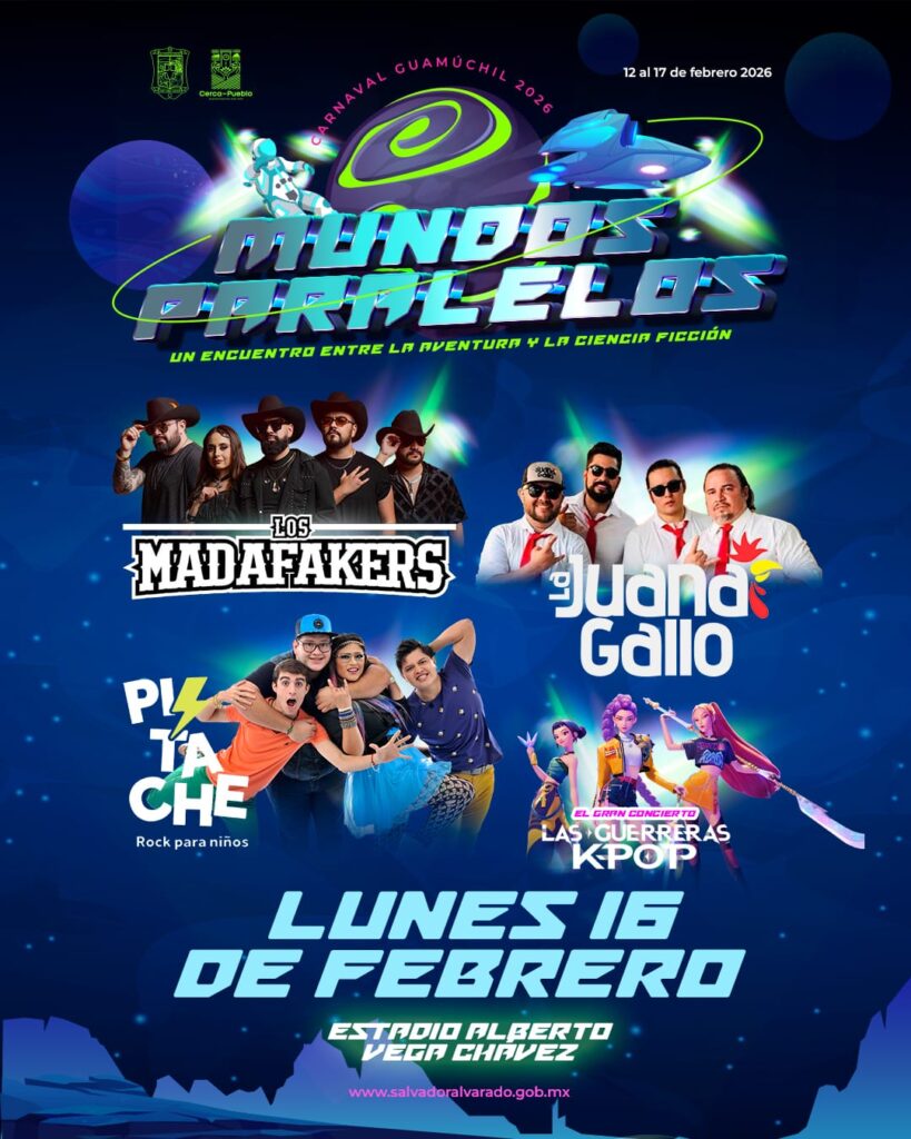 Las actividades continuarán el lunes 16 de febrero con un programa familiar integrado por Guerreras K Pop, Pistache Rock para Niños, La Juana Gallo y Los Madafakers, y el cierre del carnaval será el martes 17 de febrero con Dinastía Bojórquez, Banda Patria Chica, La Receta y Espinoza Paz, además del recorrido con la participación especial de Ninel Conde.