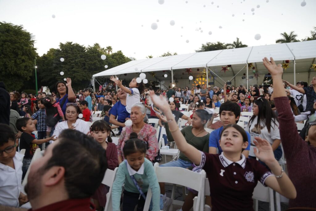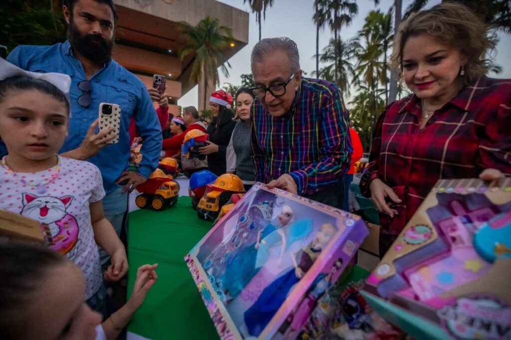 El gobernador Rubén Rocha Moya y la presidenta del DIF Sinaloa, Eneyda Rocha Ruiz, realizaron el tradicional encendido del monumental Árbol de Navidad y la apertura de la Villa Navideña.