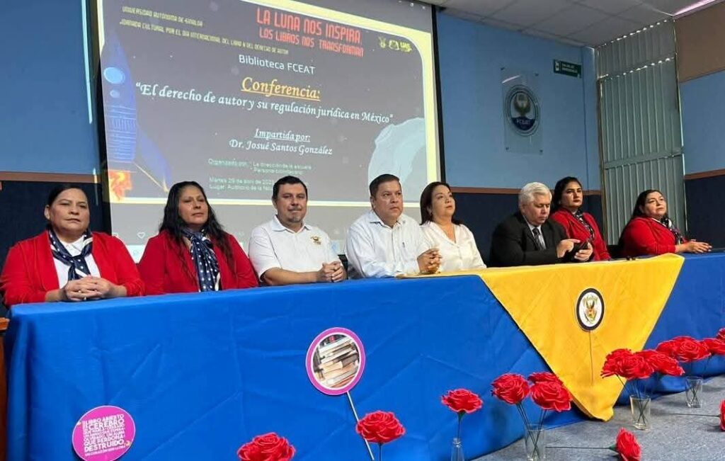 “Este día tuvimos una excelente conferencia para alumnos y maestros de la FCEAT a cargo por Dr. Josué Santos González, y la cual se tituló, el derecho de autor y su regulación jurídica en México, la cual tuvo como objetivo dar un panorama más amplio sobre la historia del mismo, regulación legal, definición, tipos de obras protegidas, derechos reconocidos y organismo encargado de ello, entre otras cosas”.
