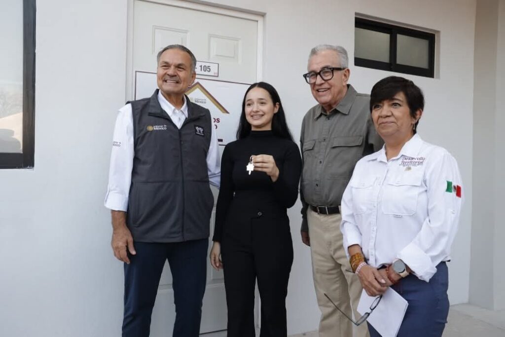 El gobernador Rubén Rocha Moya, junto con la secretaria Edna Vega Rangel y Octavio Romero Oropeza, director general de INFONAVIT, entregaron las primeras 40 viviendas a beneficiarios del programa Vivienda para el Bienestar en el fraccionamiento Nuevo Horizonte.