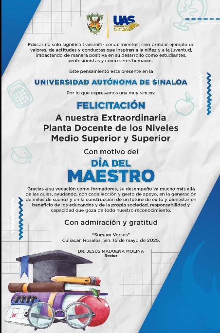 En su día, la UAS reconoce y agradece el invaluable trabajo de nuestros maestros.