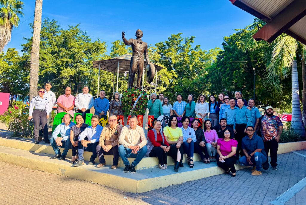 La Presidenta Municipal, Lupita López González, acompañada de funcionarios municipales, colocó ofrendas florales en honor al ídolo de México, Pedro Infante, cuya figura ha dado identidad a Guamúchil y lo ha posicionado a nivel mundial