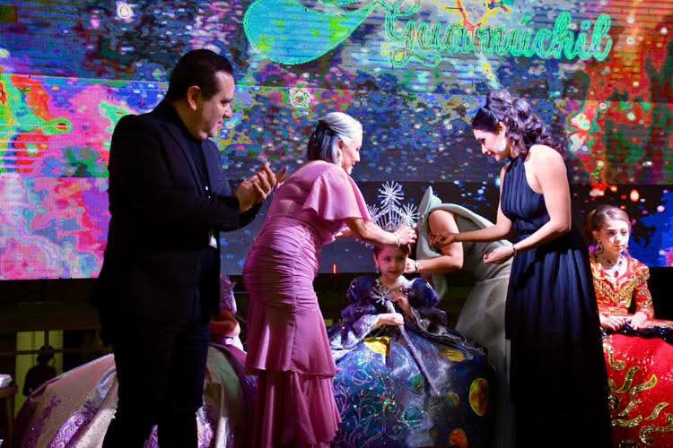 La presidenta municipal de Salvador Alvarado, Lupita López González, acompañada por la directora del Sistema DIF municipal, Rosalinda Cruz Huitrón, y la representante de Turismo del Gobierno del Estado, Frida Chávez y el presidente del patronato del carnaval, Romel Omar Báez Lugo, encabezó la emotiva ceremonia donde fueron coronados los pequeños soberanos.