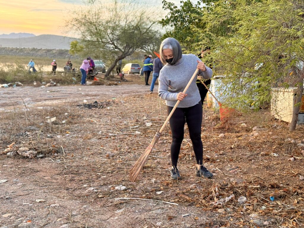 Guamúchil, Sinaloa; a 31 de enero del 2026.– La presidenta municipal, Lupita López González, encabezó este fin de semana la jornada “Cerca del Pueblo”, realizada en la zona de las cooperativas pesqueras de la presa Eustaquio Buelna, donde se llevó a cabo una limpieza exhaustiva con el objetivo de embellecer el área y dejarla en óptimas condiciones para que las familias puedan disfrutar de este importante espacio turístico, especialmente en esta temporada que arriban los pelícanos.