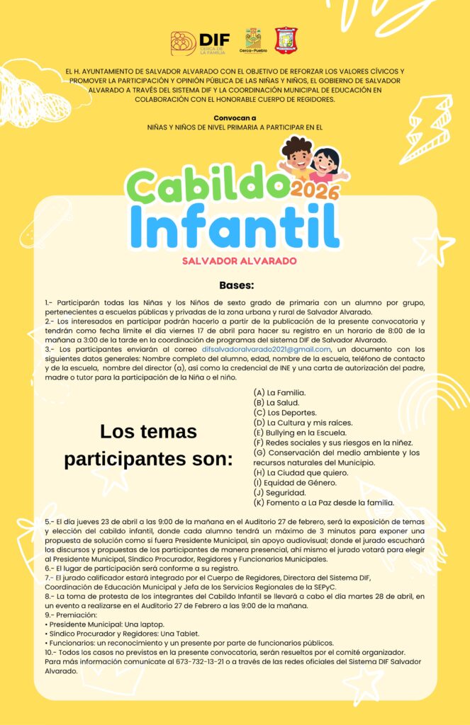 Con el respaldo de la SEPyC, el Sistema DIF Municipal lanzó la convocatoria para integrar el Cabildo Infantil, dirigida a niñas y niños que cursan el sexto grado de primaria, tanto de la zona urbana como rural.