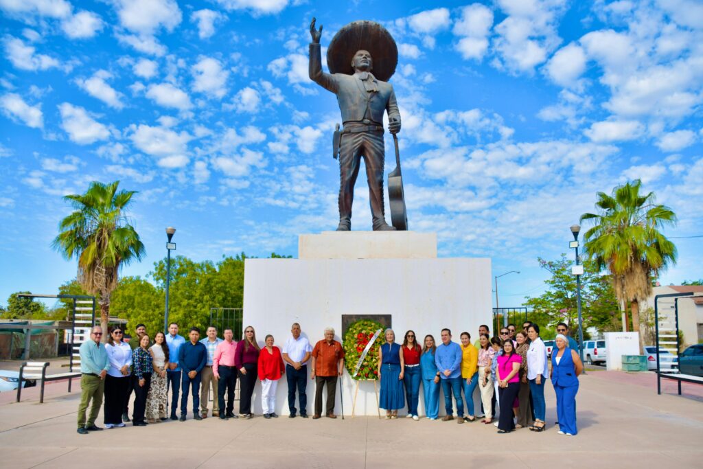 La alcaldesa Lupita López González encabezó la colocación de ofrendas florales en honor al ídolo de México, cuyo legado mantiene en alto el nombre de Guamúchil