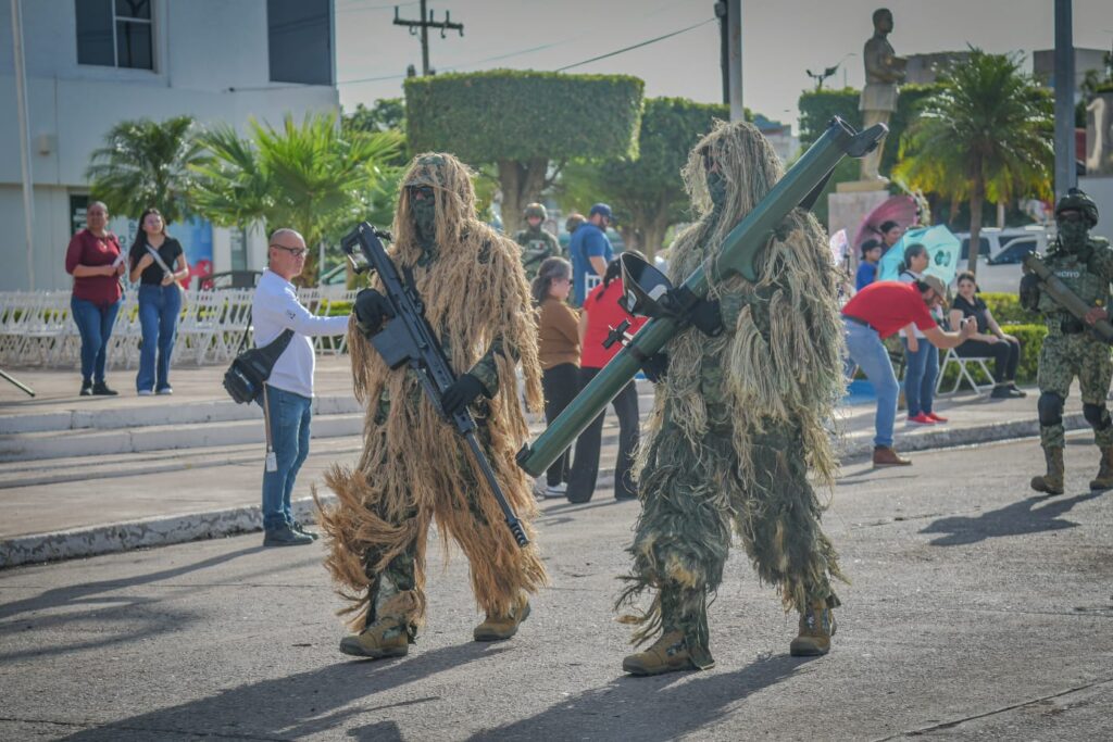 La presidenta municipal, Lupita López González, encabezó el acto cívico conmemorativo que incluyó honores a la bandera, colocación de ofrenda floral y un desfile cívico-militar