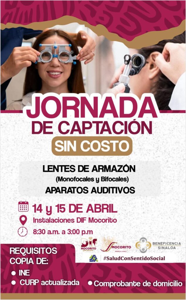 El Sistema DIF y el H. Ayuntamiento de #Mocorito anuncian la Jornada de Captación SIN COSTO de lentes de armazón y aparatos auditivos.