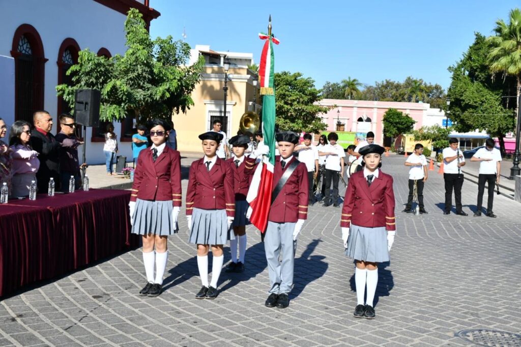 Durante el izamiento de bandera en la Plazuela Los Tres Grandes, el Secretario de Presidencia, Alfredo Díaz Mejía, destacó que Benito Juárez representa el claro ejemplo de que la educación, la disciplina y los valores pueden transformar el destino de una persona y de toda una nación.