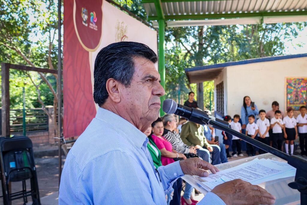 Los Chinos, Mocorito, 03 de noviembre de 2025.- El presidente municipal, Enrique Parra Melecio, encabezó este día el lunes cívico realizado en la Escuela Primaria “Profr. Constancio Rodríguez” de la comunidad de Los Chinos, donde convivió con autoridades educativas, alumnas, alumnos, madres y padres de familia, así como con personal docente del jardín de niños y de la Telesecundaria local.