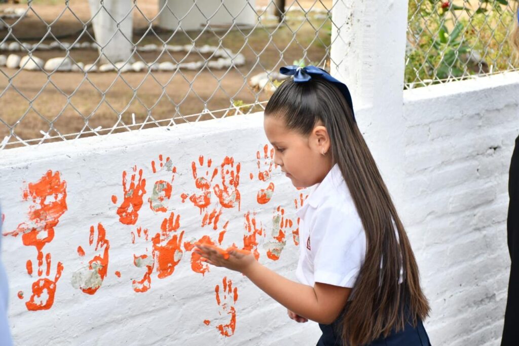 Las niñas y los niños participaron con entusiasmo, plasmando sus manos como símbolo de esperanza, respeto y compromiso para construir un entorno donde todas las mujeres y niñas puedan vivir libres de violencia.