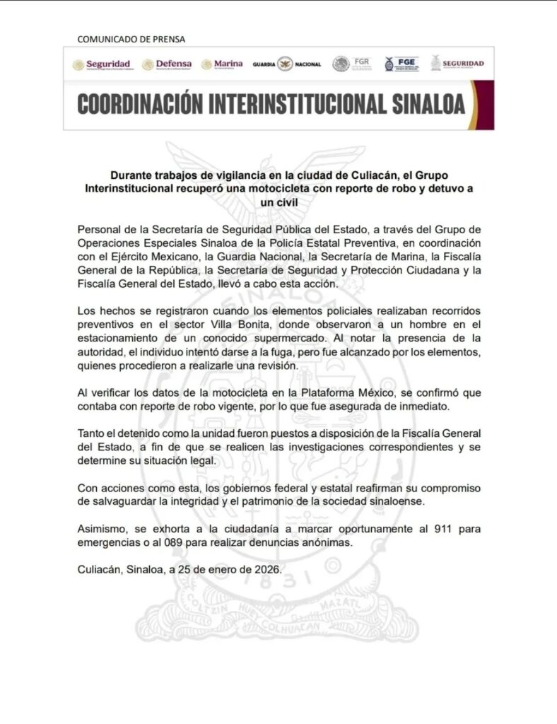 Culiacán, Sinaloa, a 25 de enero de 2026.