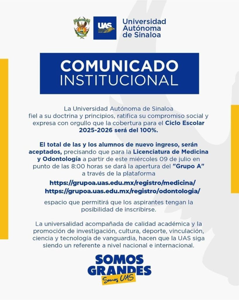 馃摙 COMUNICADO INSTITUCIONALUniversidad Aut贸noma de Sinaloa (UAS)