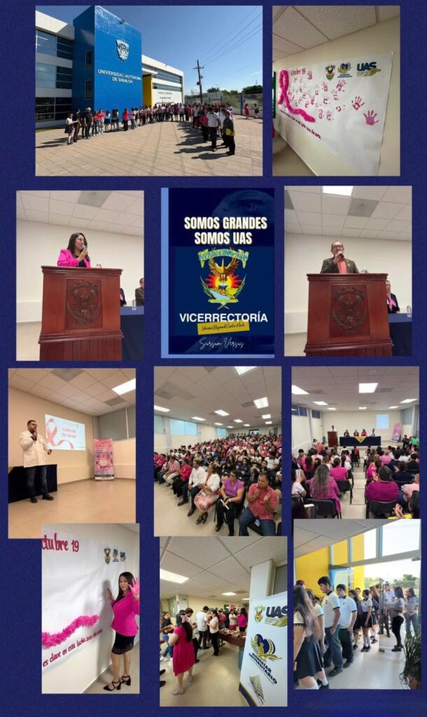 Guamúchil, Sin. – Para tener una cultura de la prevención y así poder salvar vidas, la Unidad de Bienestar Universitario de la Unidad Regional Centro Norte, Universidad Autónoma de Sinaloa, realizó la conferencia: “Cáncer de mama”, en el marco del Día Mundial de la lucha contra el Cáncer de Mama, para beneficio de su comunidad universitaria.