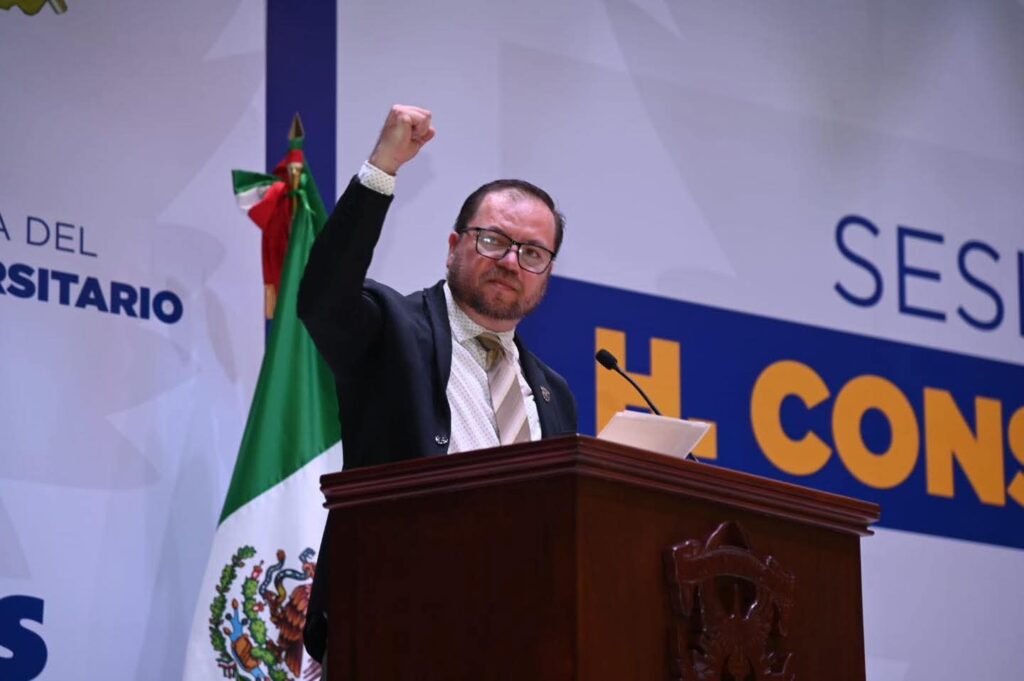 “El pasado 10 de octubre las y los universitarios volvimos a dar muestra de unidad, de democracia y de profundo amor a nuestra Alma Mater, esta fecha habrá de quedar plasmada como un día histórico, pues además de ser la primera consulta realizada a auspicio de nuestra nueva Ley Orgánica, su contenido marca un nuevo rumbo para la estabilidad y la viabilidad de nuestra institución”, expresó el Rector, doctor Jesús Madueña Molina en un mensaje a los consejeros y comunidad universitaria.