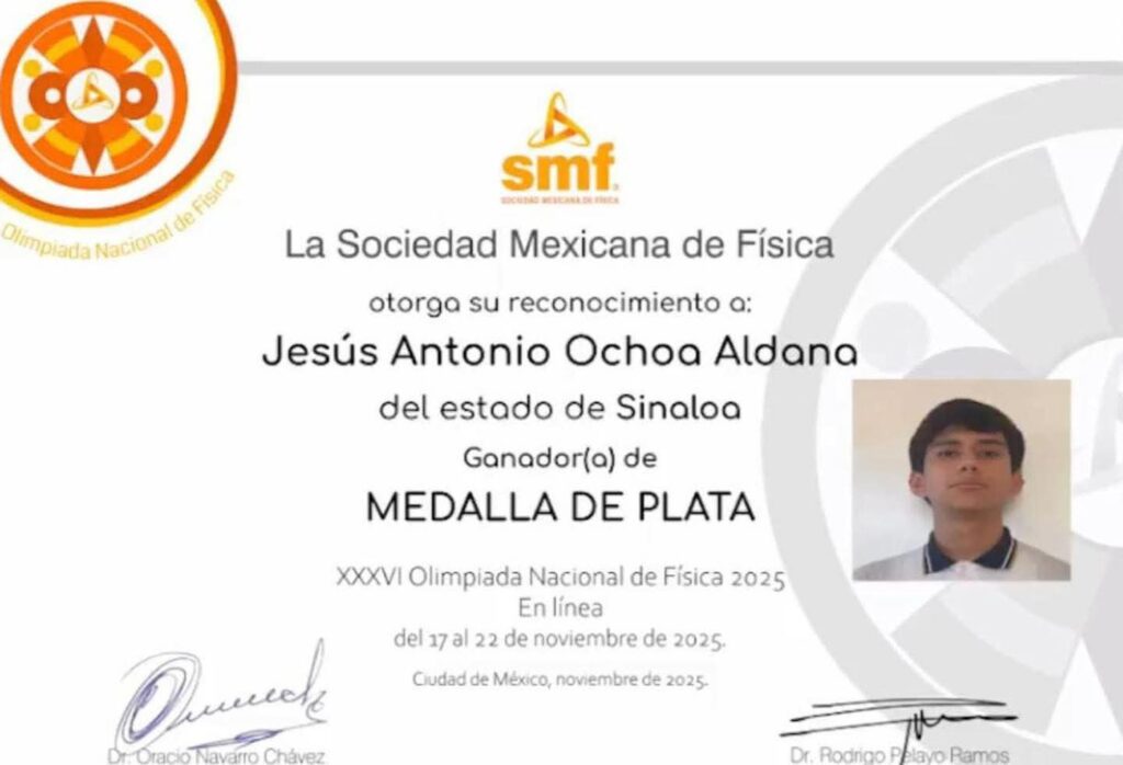 Cuatro medallas fue la cosecha que consiguió la delegación sinaloense en la pasada Olimpiada Nacional de Física en su edición 2025, informó Edgar Alejandro León Espinoza, investigador de la Facultad de Ciencias Físico Matemáticas de la Universidad Autónoma de Sinaloa (UAS) y también delegado estatal de la Sociedad Mexicana de Física.